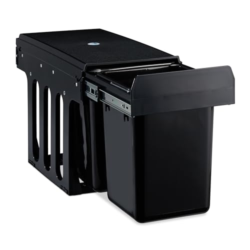 Relaxdays 2-vägs infälld papperskorg för underskåp, ABS, svart, 35,5 x 25 x 47 cm