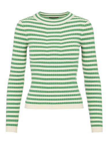 PIECES Dam Pcbina Ls O-Neck Knit Bc stickad tröja, Absinthe Green/Stripes: cdan-desf-mrng, XS