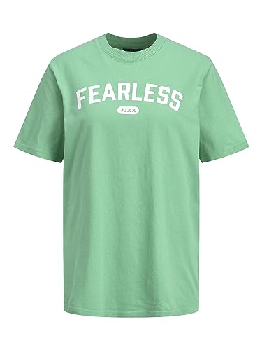JJXX Kvinnlig T-shirt JXBrook avslappnad, Absinthe grön/detalj: ljus vit tryck Cali 2, L