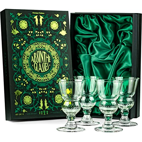 GLASSIQUE CADEAU Vintage Crystal Absinthe, Sambuca, Raki, Pastis, Ouzo glasögon | Set med 4 | Korta stammade 185 ml bägare med bubbelbehållare för att dricka grön älva | Handblåst litet vin bistroglas