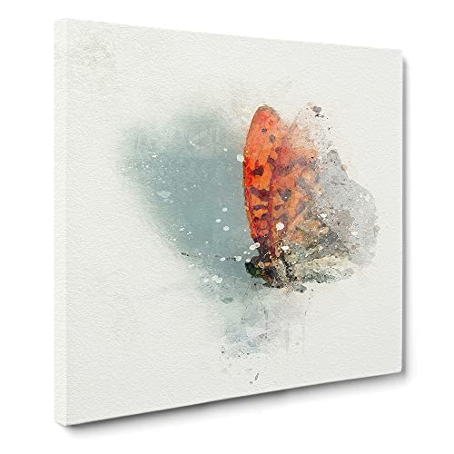Orange fjäril på en tistel i abstrakt modern kanvas väggkonst tryck redo att hänga, inramad bild för vardagsrum sovrum hem kontor inredning, 35 x 35 cm (14 x 14 tum)