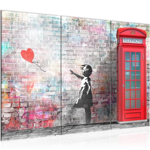 Runa Art Väggbilder Banksy Girl med ballong bild XXL loft vardagsrum röd grå abstrakt 120 x 80 cm 3 delar 033031b