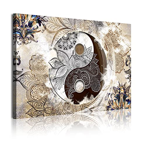 Dekorativ Arte 349 – Modern bild, digitaliserat konsttryck | Dekorativ bild för salongen eller sovrummet | Stil Yin Yang abstrakt zenfärger beige brun | 1 del 120 x 80 cm