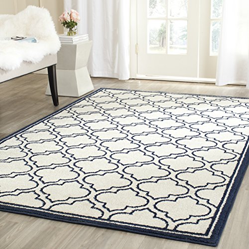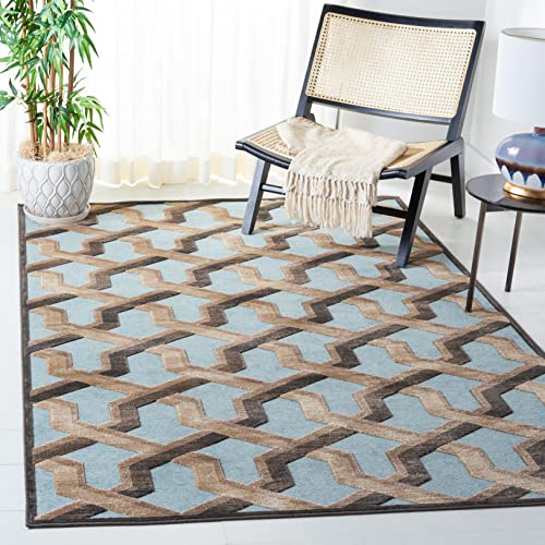 SAFAVIEH Modern abstrakt matta för vardagsrum, matsal, sovrum – Amsterdam-kollektion, kort lugg, i elfenben och ljusblå, 122 x 183 cm