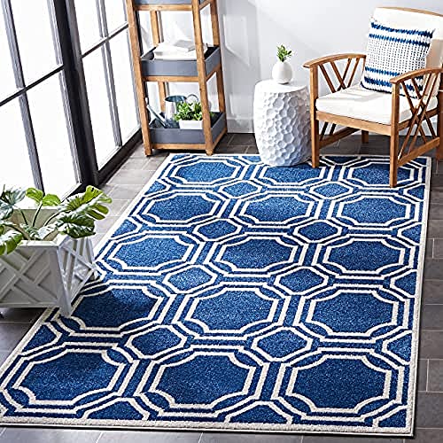 Safavieh Abstrakt inomhus Rektangulär matta, Flätad, Glastålsamling, GLA124, Blå/Multifärg, 160 X 229 cm för vardagsrum, Sovrum eller alla utrymmen inomhus