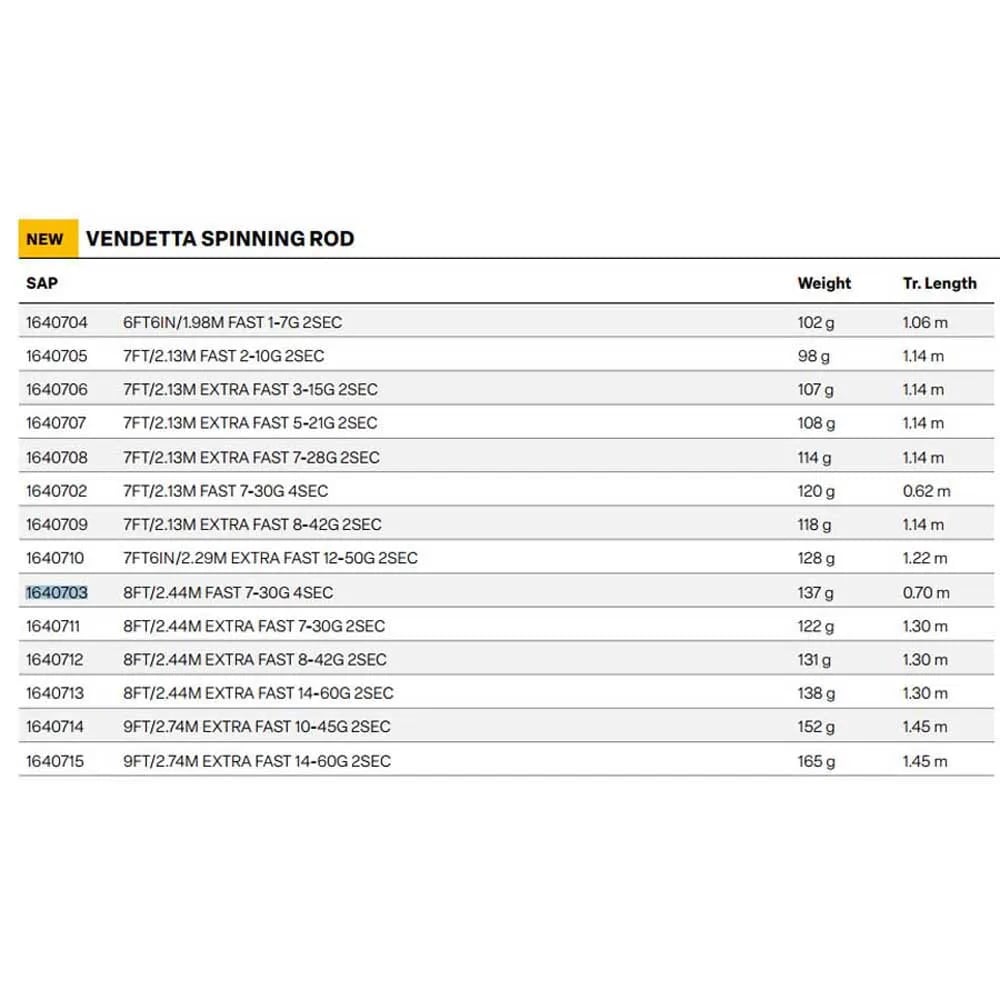 Abu Garcia Vendetta spinnspö | Spö för rovfisk i sötvatten | Snabb kolfiberblank | Anti-trasselguider | Lätt och känsligt | 2,44 m | 7–30 g