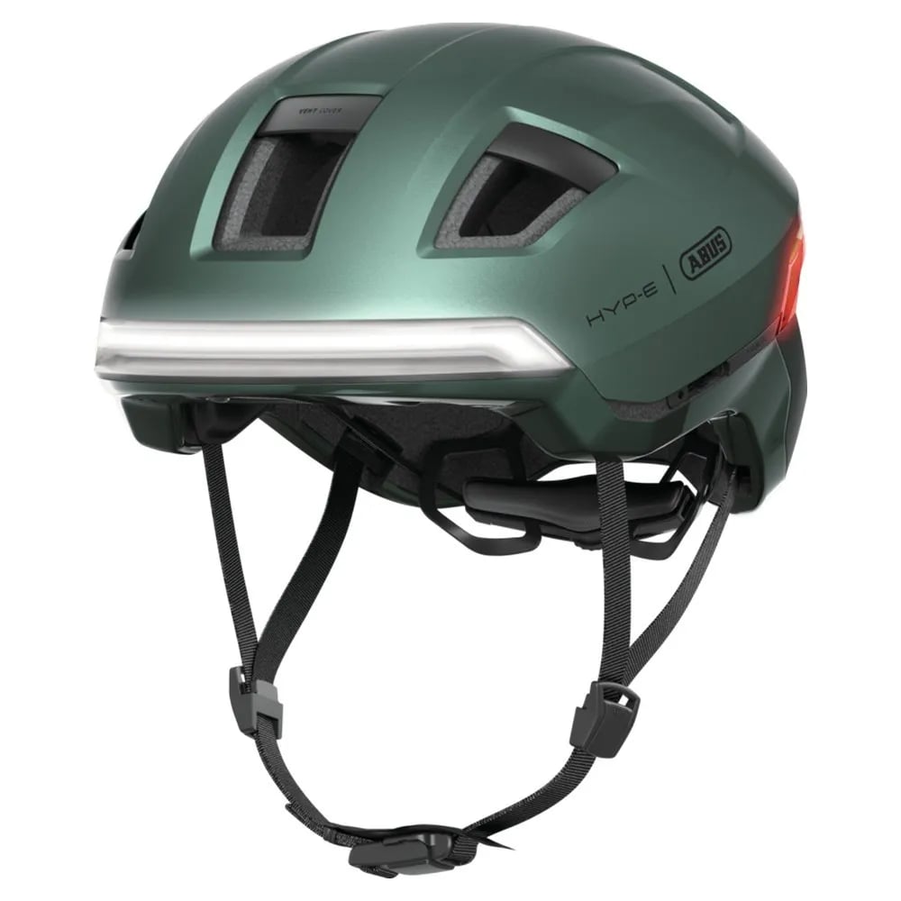 ABUS Urban Helmet HUD-Y - med magnetiskt, uppladdningsbart LED-bakljus & magnetfäste - cool cykelhjälm för vardagsbruk - för män och kvinnor - grön, storlek S