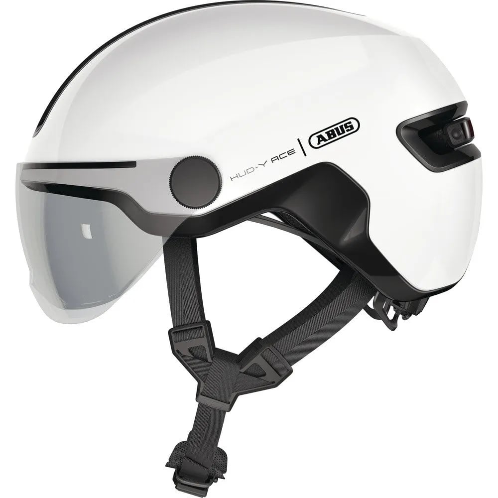 ABUS Urban Helmet HUD-Y - med magnetiskt, uppladdningsbart LED-bakljus & klickfäste - cool cykelhjälm för vardagsbruk - för män och kvinnor - ren vit, storlek S