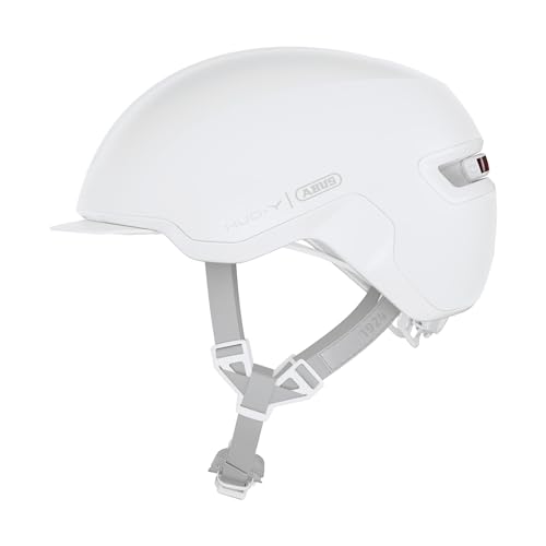 ABUS Urban Helmet HUD-Y - med magnetiskt, uppladdningsbart LED-bakljus & klickfäste - cool cykelhjälm för vardagsbruk - för män och kvinnor - ren vit, storlek L