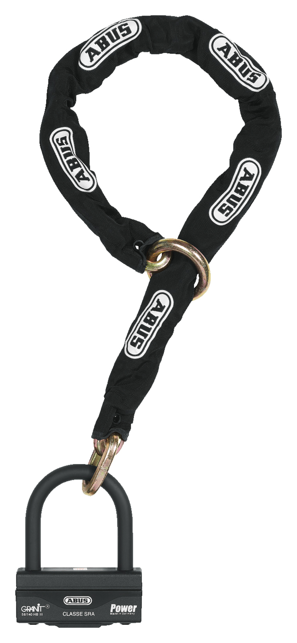 ABUS U-lås 58/140HBIII100 + kedja 12KS80Loop – motorcykellås med XPlus-cylinder och SRA-godkänd
