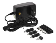 Universal AC-adapter 230V till 3-12V DC 27W/2,25A, Nordic Quality, 8 st DC-kontakter