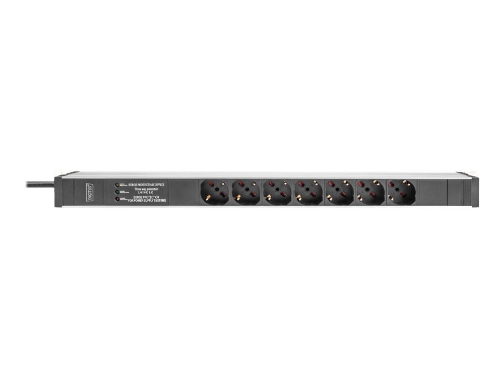 Digitus - Grenuttag (Kan Monteras I Rack) - With Aluminum Profile And Surge Protection, Integrated Line Filter - Ac 230 V - 4000 Watt - Ingång: Ström - Utgångskontakter: 7 (Typ L) - 2 M Sladd - Italien