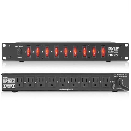Pyle 15 Amp Power Supply Control Unit, 9 Outlets, Rack Mountable Heavy Duty Power Strip with AC Noise Filter - Power Saving Power Supply for Equipment Control - 1U Steel Chassis, 6ft Cord