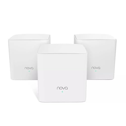 Tenda Nova MW5G Dubbelband Mesh WLAN (upp till 300 m², 6 x Gigabit-Portar, AC1200, Gigabit WAN, QoS, MU-MIMO, Strålformning) Ersätter Router, Powerline & Repeater, Vit, Paket med 3 Stycken