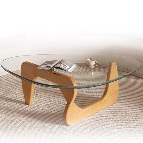 YIYHFKM Triangelsoffbord, mitten av århundradet modernt glas kaffebord, massiv träbas och klar glastopp accent soffbord, för kontor soffbord vardagsrum uteplats studie, L: 32/35/44 tum
