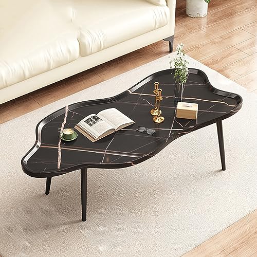 Molnformat soffbord, oregelbundet bågformat hörnbord med tjockt bord, söt accent modernt kaffe cocktailbord med 4 ben för vardagsrum, sovrum, kontor (färg: Svart, storlek: 80 x 60 x 48 cm)