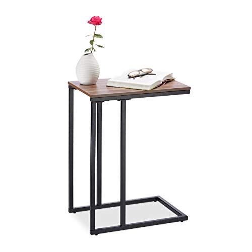 Relaxdays metallsida, robust accent, MDF med träutseende, soffbord, svart/naturlig, H x B x D: 59,5 x 30 x 45 cm