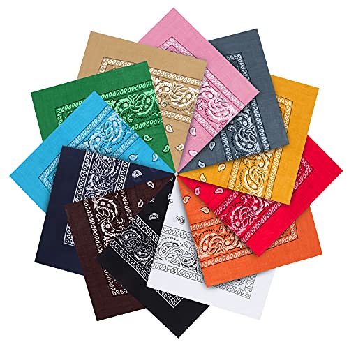 Kurtzy Blandade Bomulls Bandana Sjalar (12 Pack) – Mångsidiga Stora Hår Sjalar för Män, Kvinnor och Barn – Manschetter Accessoarer för Cowboy Bandanas, Husdjur, och Hårband