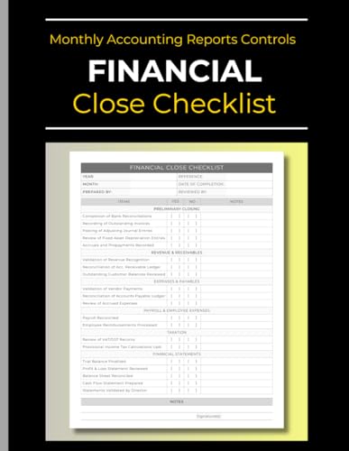 Monthly Financial Close Checklist: Prepare & Organize your Accounting Report Closing Process | Log Book for Chief or General Accountant, Finance Managers, CPA | Reporting & Audit | 110 Pages