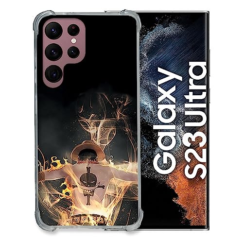 Cokitec Spetsat fodral i härdat glas för Samsung Galaxy S23 Ultra Manga One Piece Ace Black