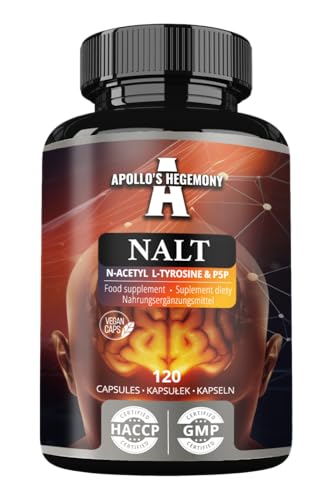 N-acetyl-L-tyrosin (NALT) 500 mg och aktivt vitamin B6 (P-5-P) 2 mg - 120 kapslar - 4 månaders leverans - höghållfast aminosyratillskott - kognitiv booster - av Apollo's Hegemony