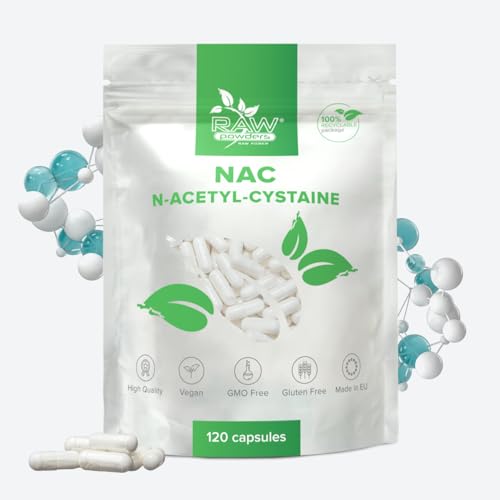 NAC (N-Acetyl-Cysteine) 600 mg, 120 Kapslar – Stöd för antioxidativ effekt och immunfunktion – Rena ingredienser, GMO- och glutenfria, GMP-certifierat kosttillskott från Raw Powders