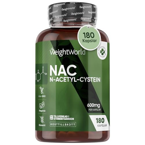NAC - N-Acetyl L-Cystein - 180 kapslar - 600 mg per kapsel - 6 månaders förbrukning - Glutation - Aminosyror - Vegansk N Acetyl Cystein från WeightWorld