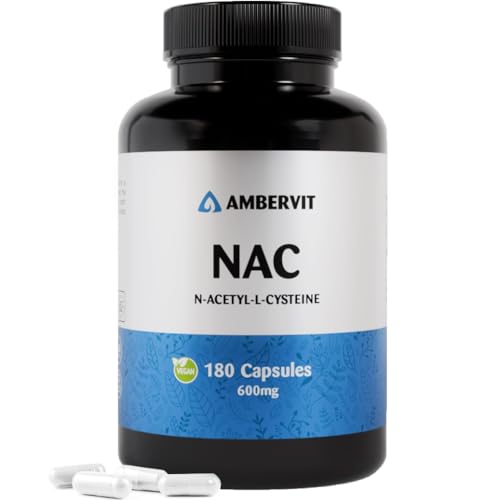 NAC Supplement 600 mg - 180 kapslar (N-Acetylcystein) Premium NAC kapslar från växtbaserad källa | Hög biotillgänglighet och tolerabilitet | Ambervit