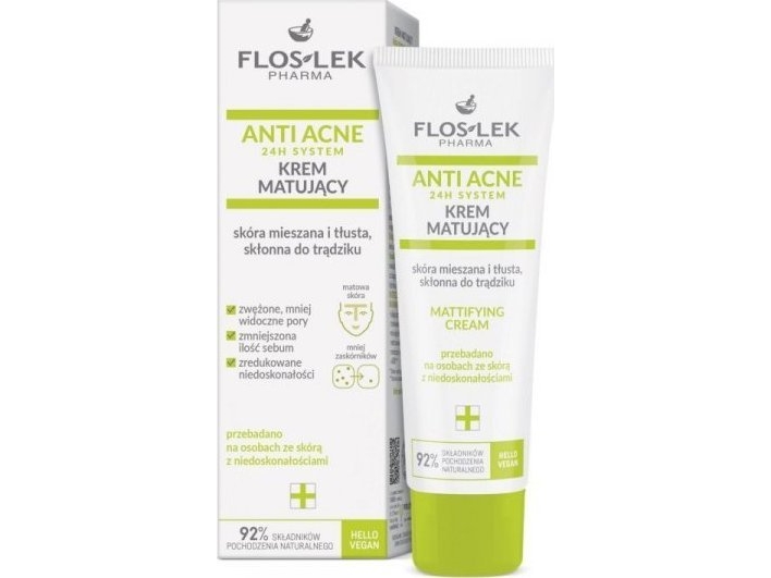 Floslek Anti Acne 24H System Mattifying Cream For Combination, Oily Skin Prone To Acne 50Ml