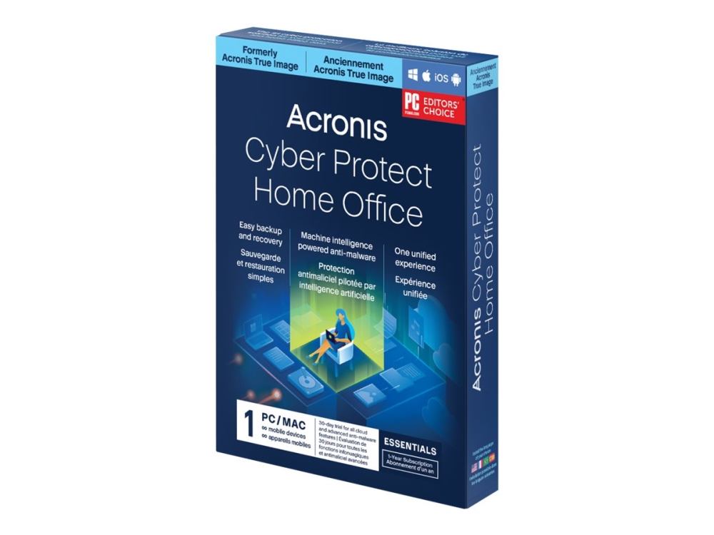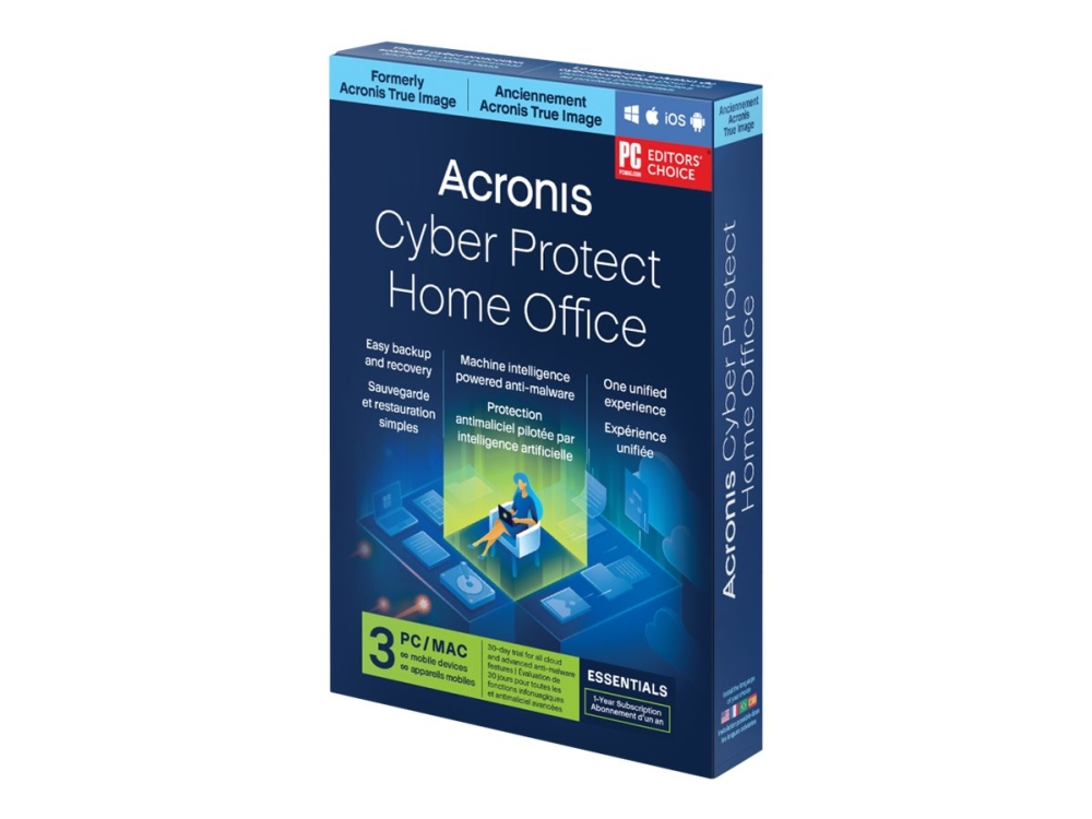Acronis Cyber Protect Home Office (formerly Acronis True Image) | Essentials Version | 3 PC/Mac | Personal cyber protection | Local backup, cloning, recovery, anti-ransomware and more | 1-year