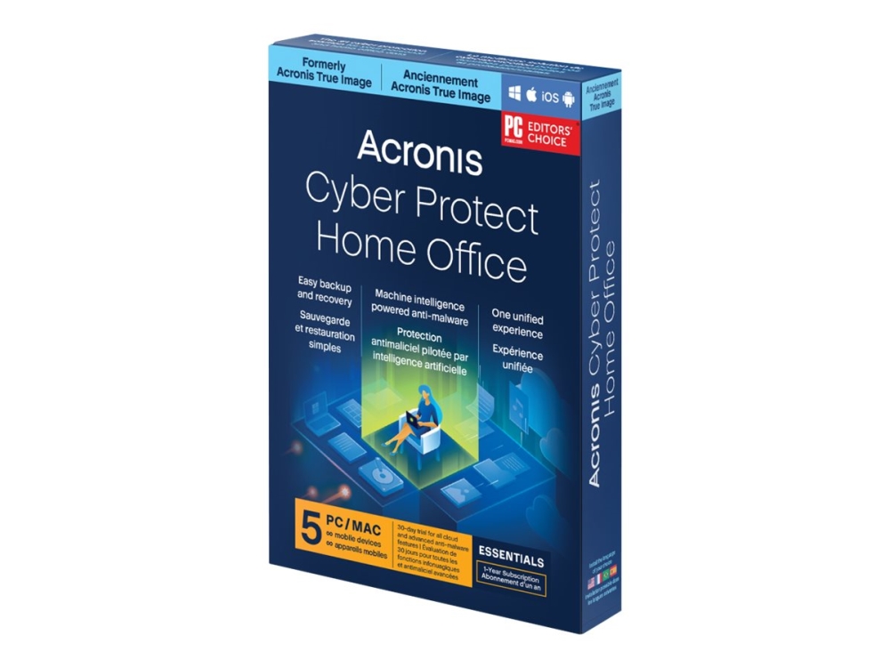 Acronis Cyber Protect Home Office (formerly Acronis True Image) | Essentials Version | 5 PC/Mac | Personal cyber protection | Local backup, cloning, recovery, anti-ransomware and more | 1-year