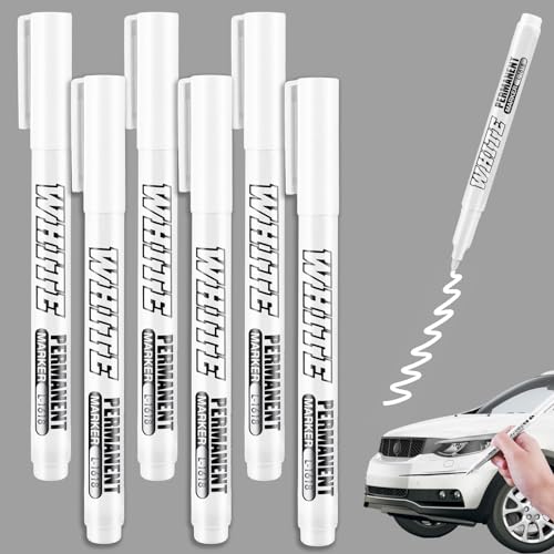 Jeffdad Acrylic Pens White Waterproof, 6 Pieces Reversible White 1mm Fine Tip Permanent Markers Acrylic Paint Permanent Marker White Acrylic Pen for Black Paper Wood Metal Glass Fabric Stone Deck