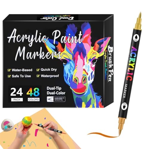 Akrylpenna med dubbla spetsar (fina och penselspetsar) - 24 unika akrylmarkeringsfärger för olika ytor och konstverk - Akrylpenna