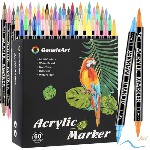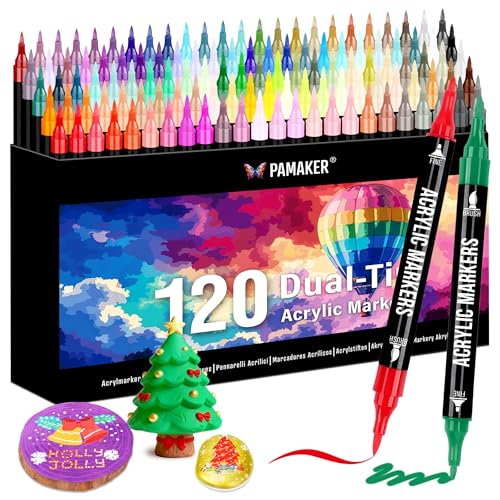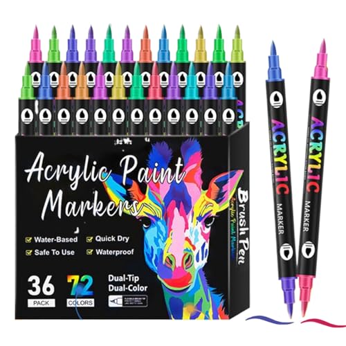 Acrylic Paint Markers, Double Tip Art Pens, Fade Resistant Colors, Versatile Use on Paper, Glass, Wood, Canvas, Ceramic, Rock, Great for Craft Projects, Artists, Hobbyists