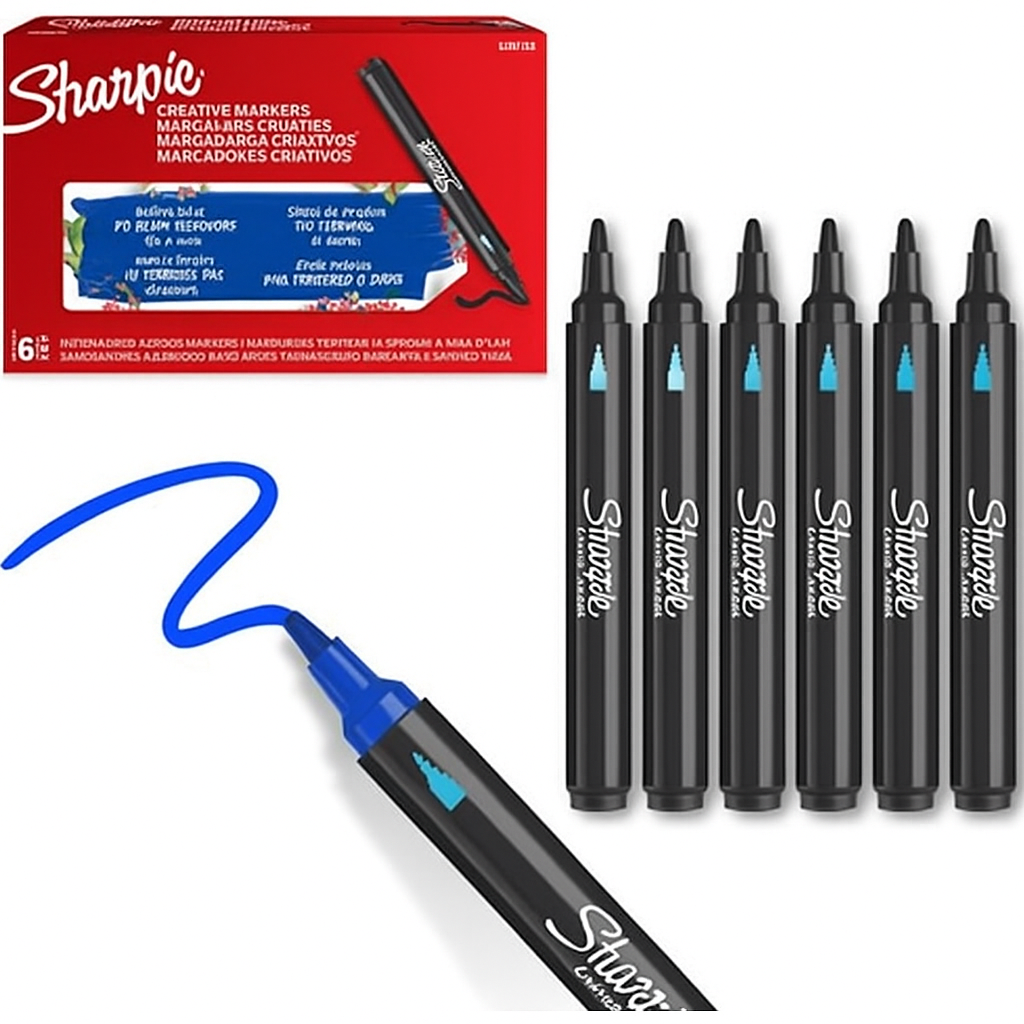 Sharpie Creative Marker Acrylic Paint Pens | Bullet Tip Water-Based Paint Markers | Blue | 6 Count