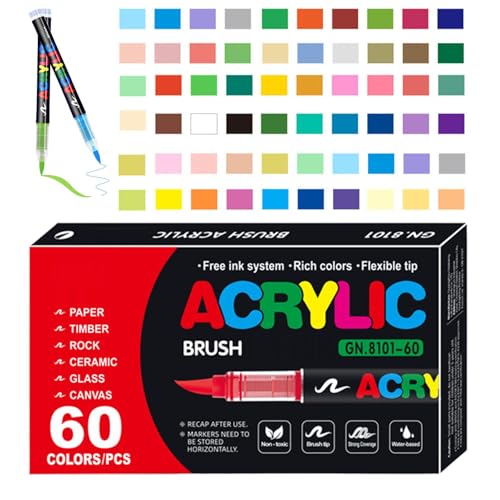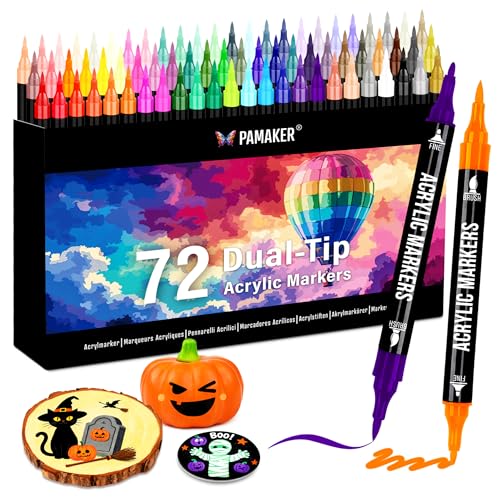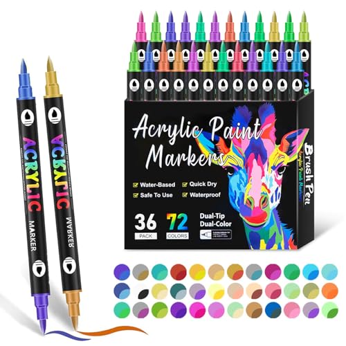 Beyonddraw Dual Tip Acrylic Paint Pen Marker - 24/48/72 Colors, Two-color Acrylic Paint Markers, Double-ended Design with Colour Identification Code At The End, Quick Dry (36PACK/72COLOR)