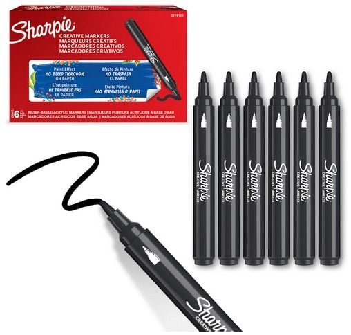 (bundle product) Sharpie - Creative Marker Acrylic Paint Pens - Bullet Tip Water-Based Paint Markers - Black - 6 Count (SKU: 2218123)