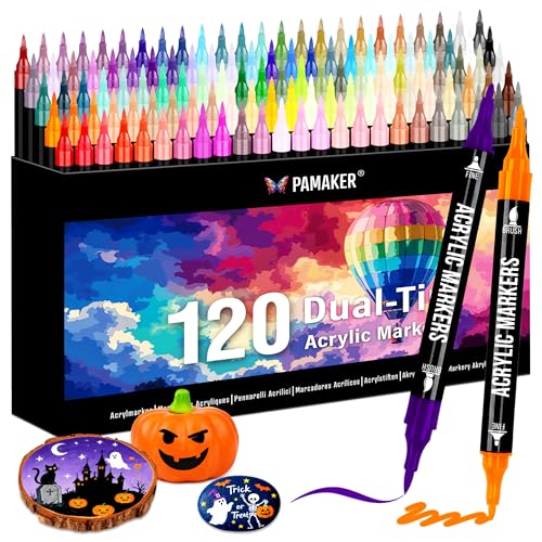 120 färger akrylpennor set – akrylmärkpenna med fin spets och pensel för tyg, duk, glas, trä och papper – perfekt för barn och vuxna, för ritning och gör-det-själv-pysselprojekt