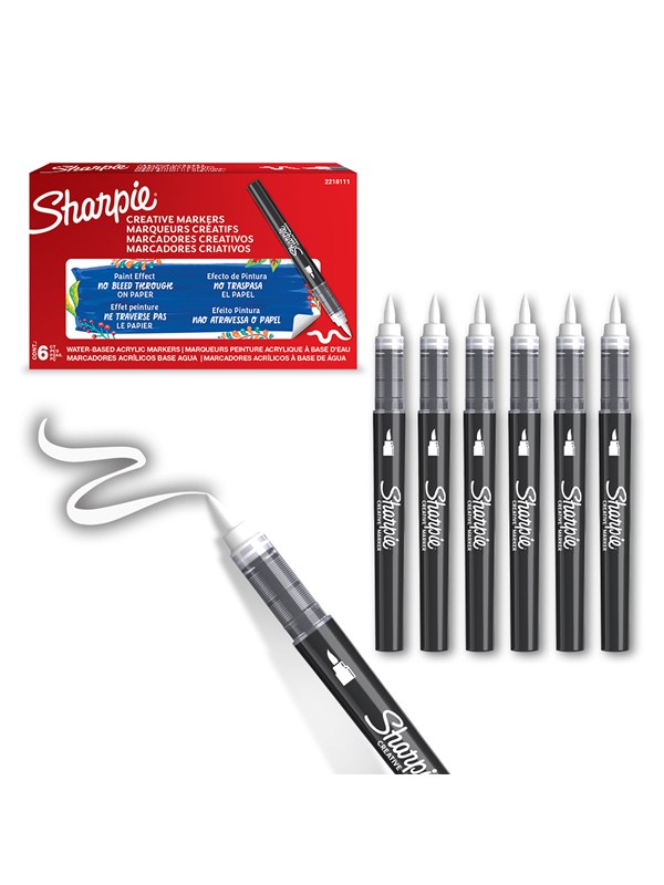 Sharpie Creative Marker Acrylic Paint Pens | Brush Tip Water-Based Paint Markers | White | 6 Count