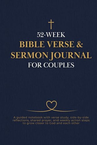 52‑Week Bible Verse & Sermon Journal for Couples: A guided notebook with verse study, side‑by‑side reflections,, shared prayer and weekly action steps to grow closer to God and each other