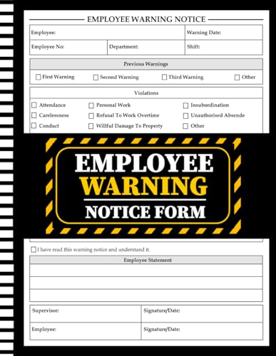 Employee Warning Notice Form: Employee Disciplinary Action Forms Book – Warning Notice, Write-Up, and Corrective Action Sheets to Track Employee Performance