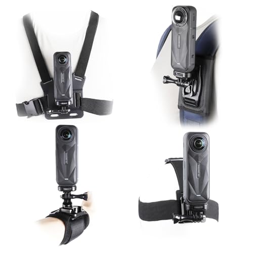 Kompatibel med GoPro 9, 8, 7, 6, 5, SJCAM och Insta360-actionkamera, bröstbälte monteringssats, justerbar tillbehör, huvudrem, handrem, ryggsäckshållare