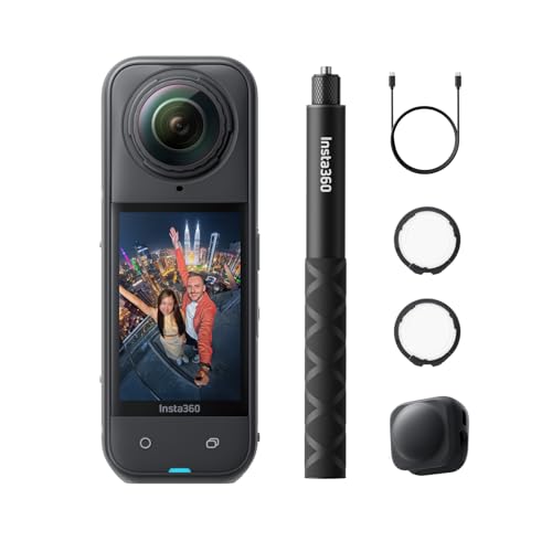 Insta360 X5 objektivskyddspaket – vattentät 8K 360° actionkamera, ledande svagt ljus, osynlig selfiepinne-effekt, robust och utbytbar lins, 3-timmars batteri, klart ljud, stabilisering