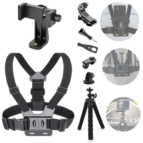 YHTSPORT Bröstsele bröststöd, mobiltelefonhållare hållare hållare rem för Gopro actionkamera och telefoner bärbar stativ (uppgraderad version)