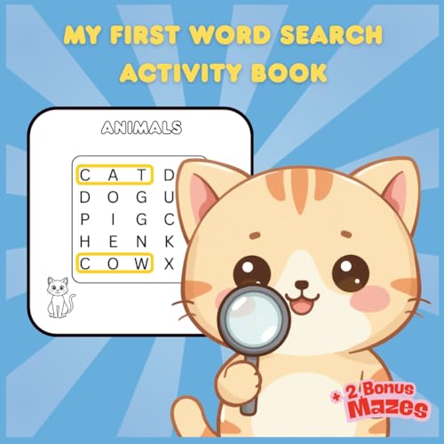 My First Word Search Activity Book for Kids Ages 4-8: Fun and Easy Word Search Puzzles for Beginners with Animals, Food, Toys and More | Large Print | 50+ Puzzles with Bonus Mazes