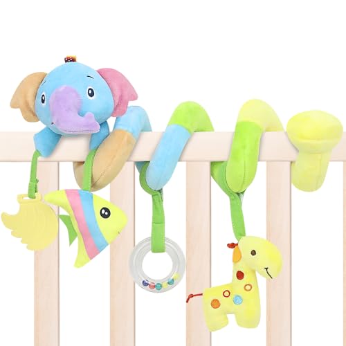 Baby Car Seat Toys, Activity Spiral Plush Stroller bar Hangings Toy, Crib Accessories with squeak for boy or Girl (Elephant)