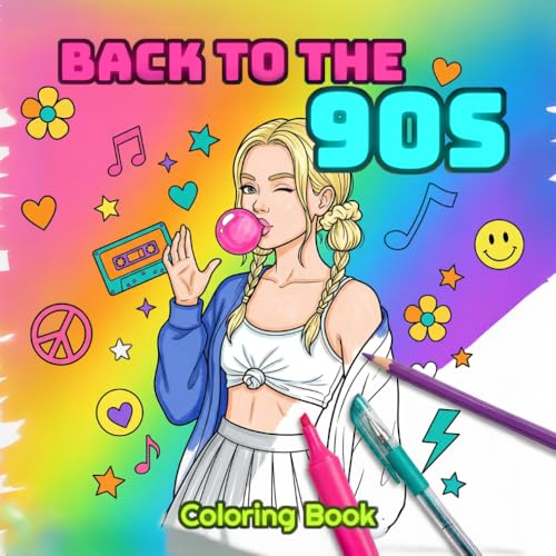 Back to the 90s: Coloring Book for Adults: Nostalgia Coloring Pages with 90s Pop Culture, Fashion, Toys, Cartoons & Retro Vibes — Relaxing Stress Relief Activity Gift for 90s Kids