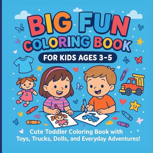 Big Fun Coloring Book for Kids Ages 3-5: 50 Easy Outlines of , Toys, and Everyday Adventures!: Cute Toddler Coloring Book with Trucks, Dolls, Animals, ... Preschool & Kindergarten Learning Activity