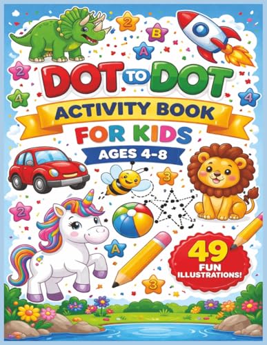 DOT To DOT Activity Book For Kids Ages 4-8: Follow the Numbers to Reveal Hidden Pictures, Animals, Toys, and Fun Adventures