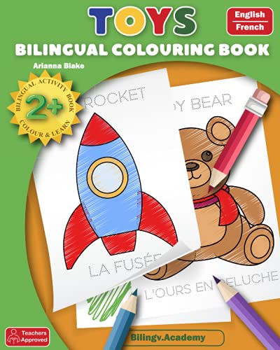 TOYS BILINGUAL COLOURING BOOK English - French BILINGUAL ACTIVITY BOOK 2+COLOUR & LEARN Teachers Approved Bilingv.Academy
